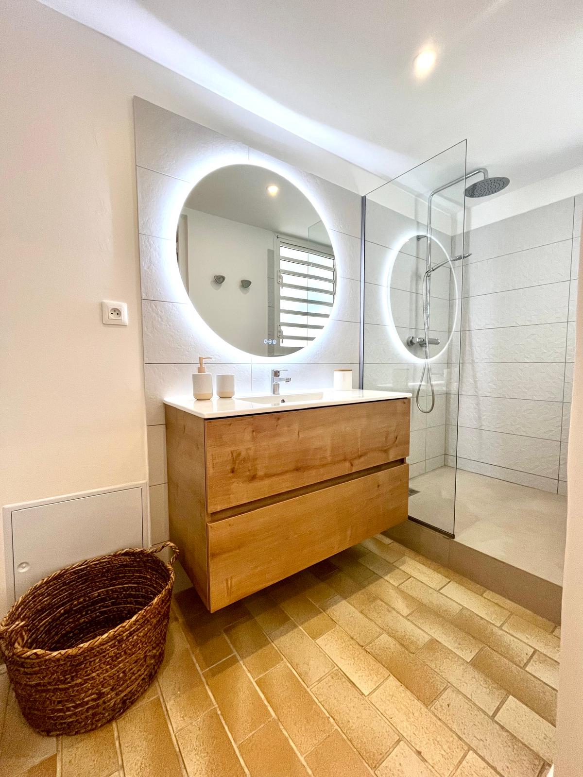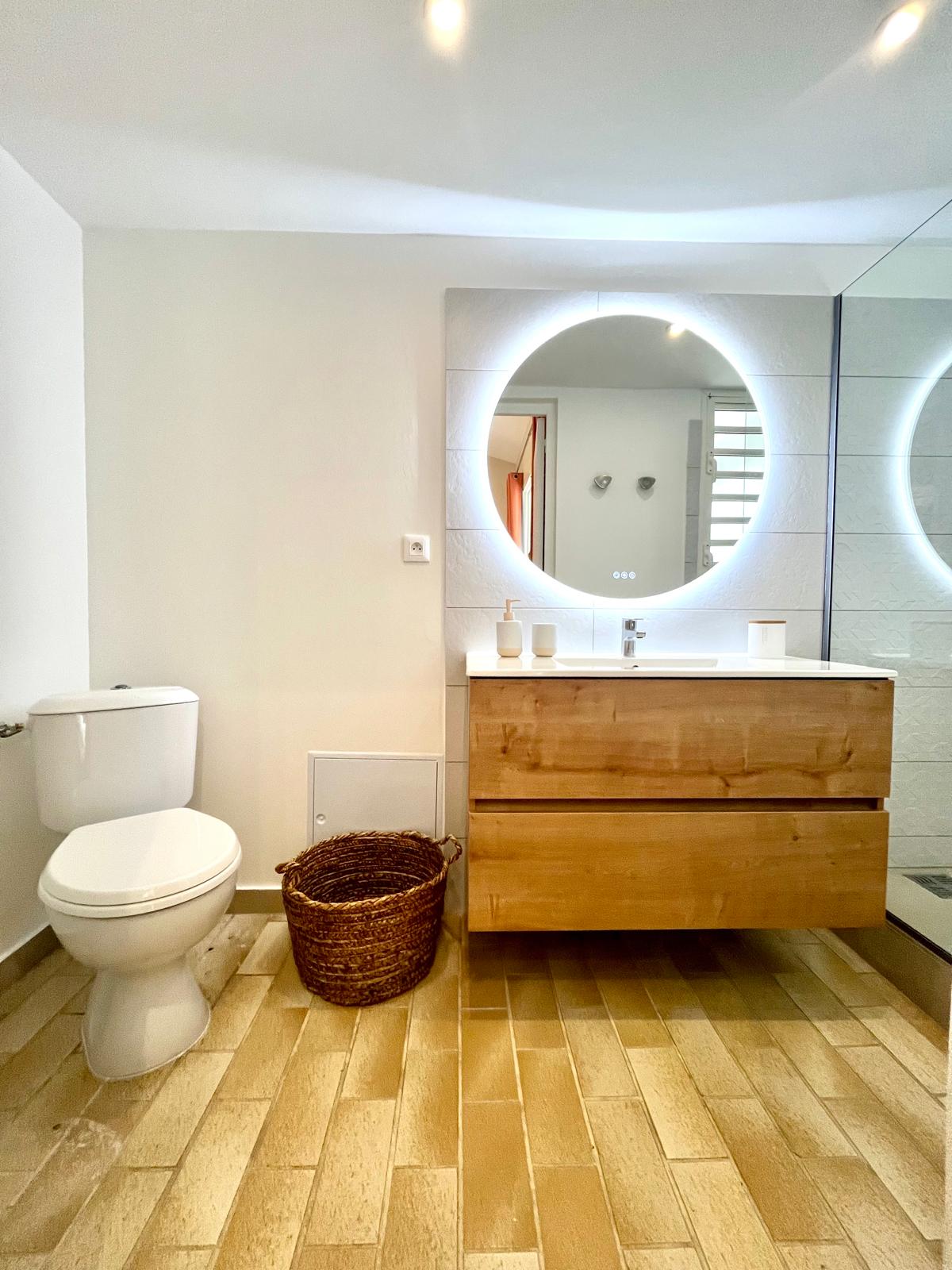 Ce studio de 24m2 avec terrasse privative séduit par son charme et son confort. Logement de plain-pied, accessible par 4 marches. Décoré avec soin et doté d’équipements modernes, il comprend :